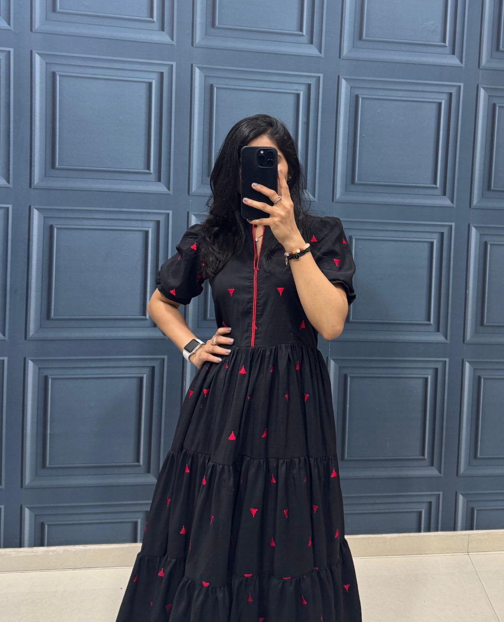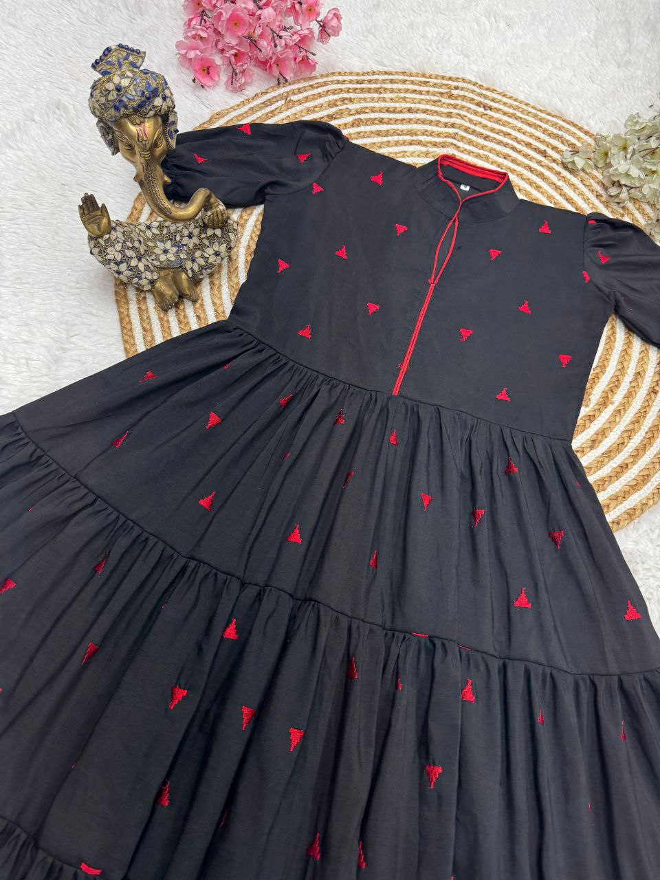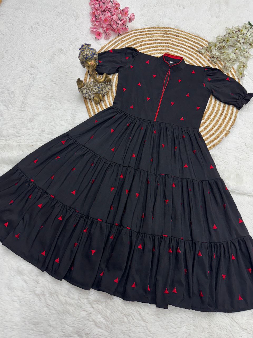 *This Adhyaa Dress made from Viscose Cotton fabric with Embroidery Work and stylish 3 Layer Pattern*