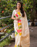 🌸 Graceful Design: Off-white base with vibrant multicolor Ikat-inspired border & pallu.