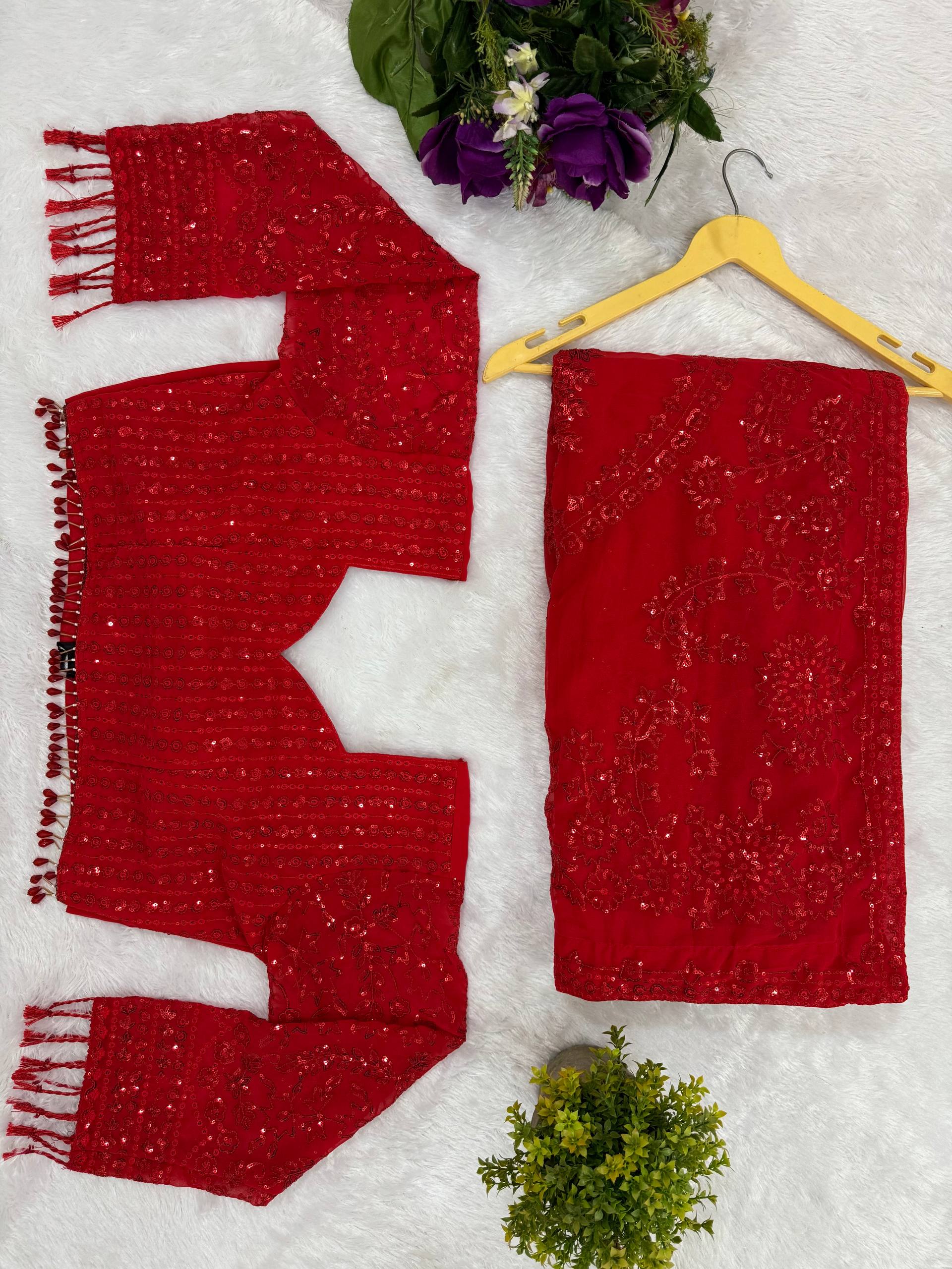 *Work:- HEAVY EMBROIDERY SEQUINS WORK WITH BACK PATCH LACE / 5.5 mtr*