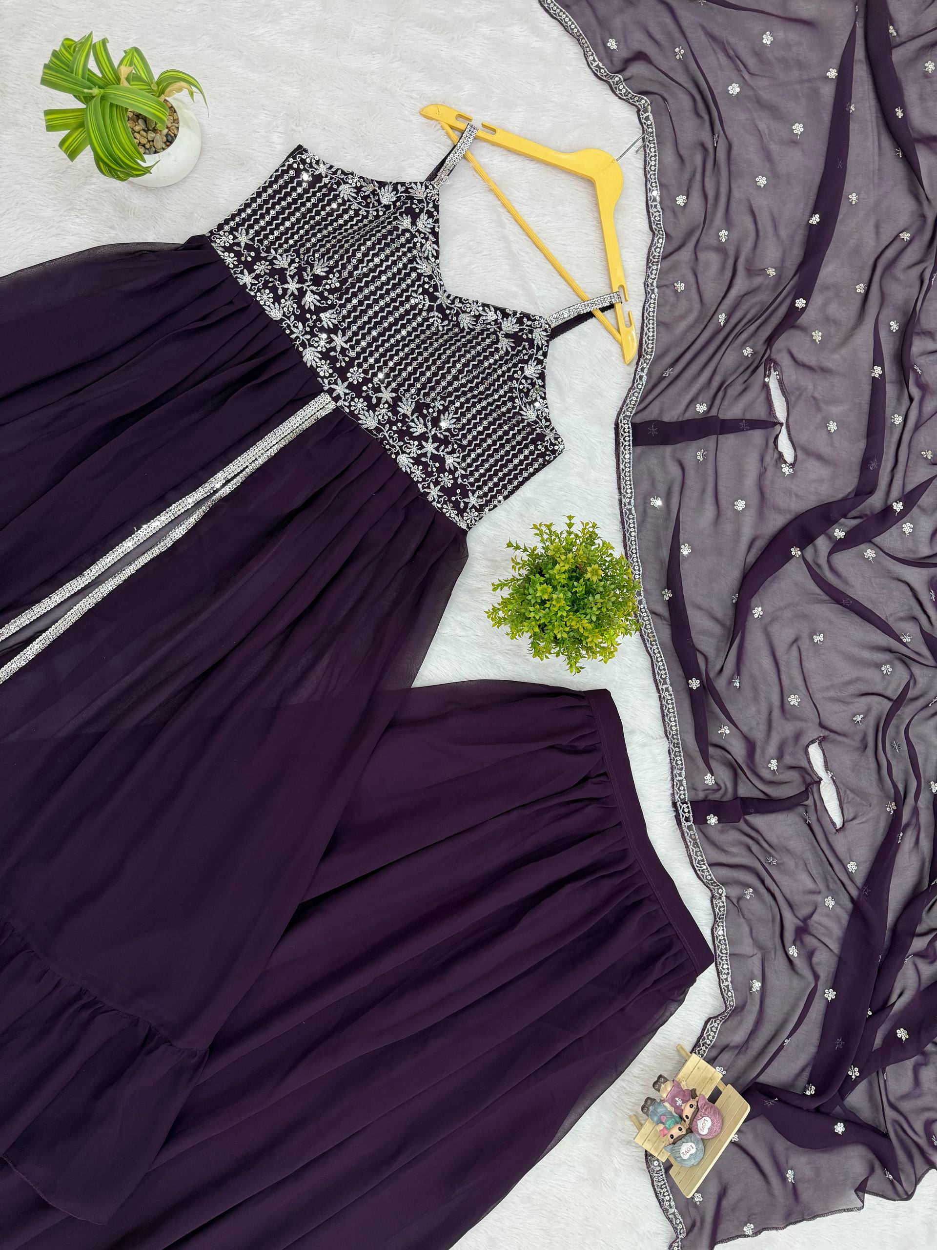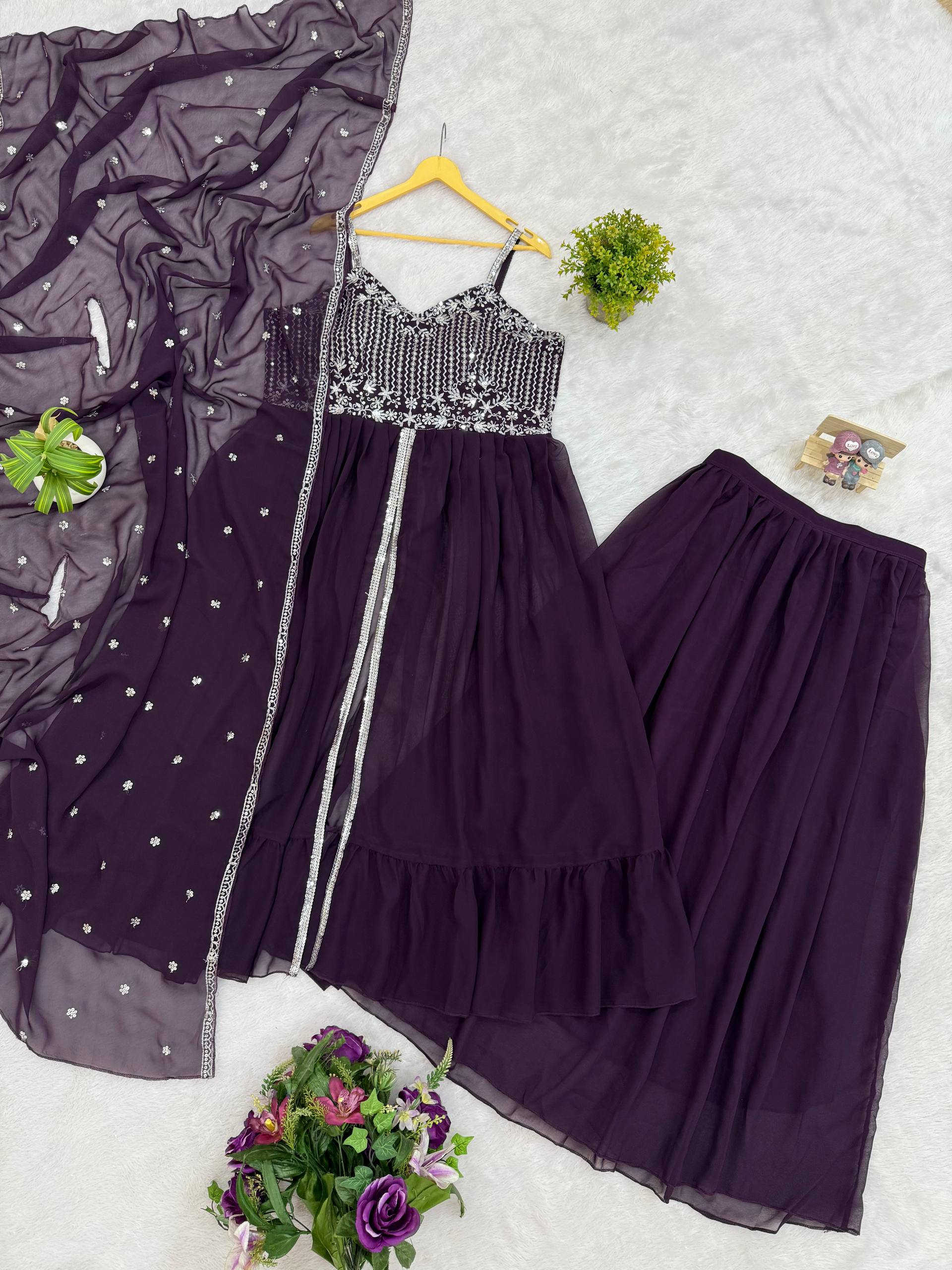 *🥻WE ARE LAUNCHING NEW SUPERHIT TRENDING FAUX GEORGETTE FABRIC 3 PIECE SET LEHENGA,KOTI,DUPATTA WITH EMBROIDERY WORK🥻*