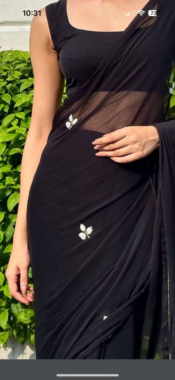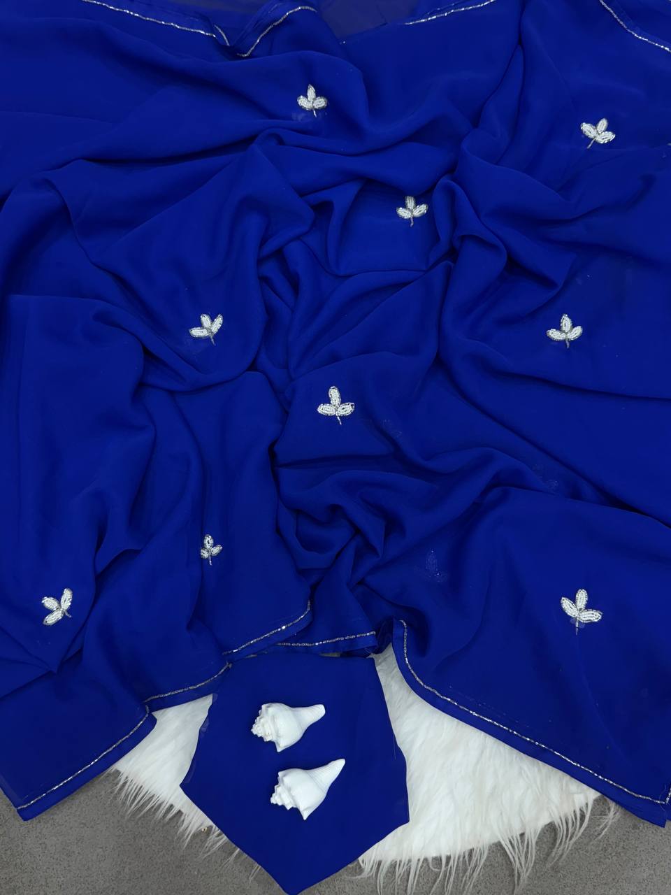 SOFT GEORGETTE DINNER SAREE WITH HANDWORK CUT DANA LEAF WITH SILVER CUT DANA HANDWORK LINE BODERÂ