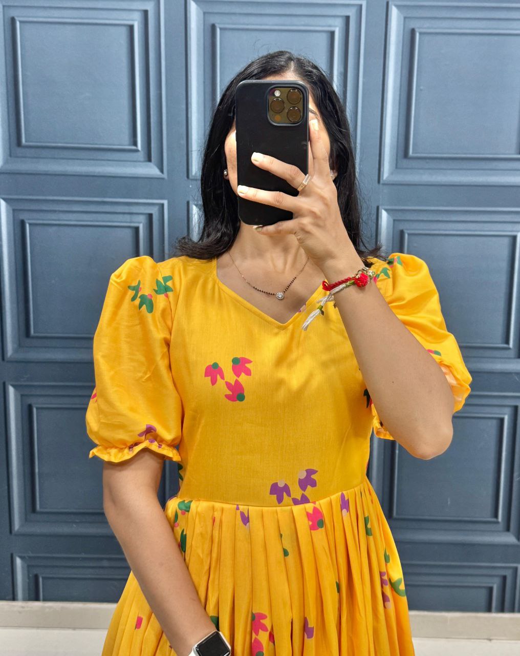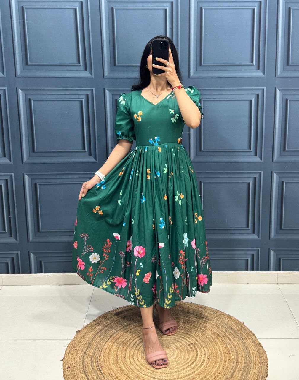 *This Dress made from muslin cotton fabric with Print Work and stylish sleeves pattern*